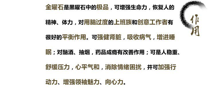 Gold Yaoshi obsidian in women can enhance the vitality the restoration ofhuman spirit physical strength the excessive use of the brain workers andcreative workers have balance effect is very good. Strong kidney disease gas absorption improve sleep; for drinking smoking drug addiction hasimprovement effect; can make the person is sedate relieve pressure, be in a calm mood eliminate the emotional distress and can strengthen theaction force enhance the charisma the centripetal force.
