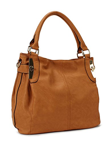 -. Feature : Ultra soft synthetic leather with fabric lining. Classic gold hardware. / Removable shoulder strap drops 22". Two handles. / Interior cell phone pocket and small side zipper pocket. Separate zippered coin purse. Exterior back zipper pocket. / Comfortably holds an iPad, iPad Mini, other tablet or a laptop 10" and under. / Size: 13.2" x 10.6" x 5.5"