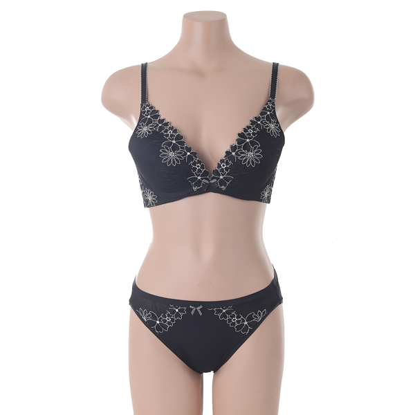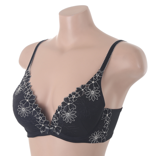 중심이 낮은 딥브이 브라로 전중심 압박을 최소화 했으며, L자형 와이어가 가슴을 가운데로 더욱 더 모아줍니다.