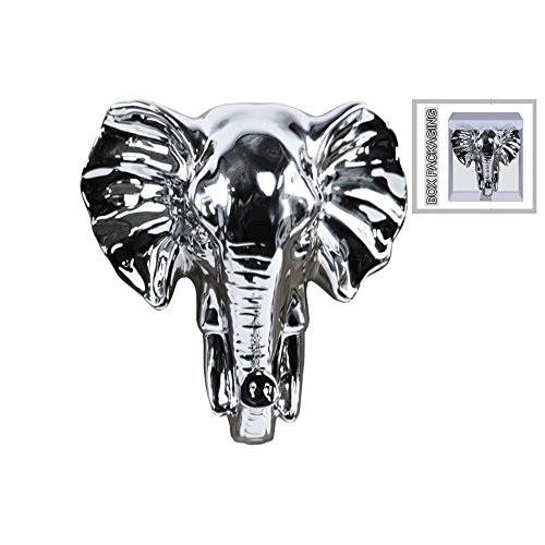 Studio : Benzara Publisher : Benzara Binding : Kitchen Product Description An elegantly designed elephant head wall decor crafted with the vision of embellishing your walls. It is built in ceramic and has a polished silver chrome finish. Its captivating charm makes it ideal for all decor styles. Dimensions: 5.75"X5.75"X4.75"H 0