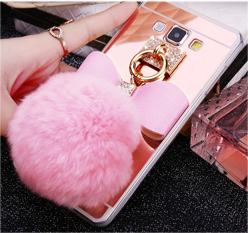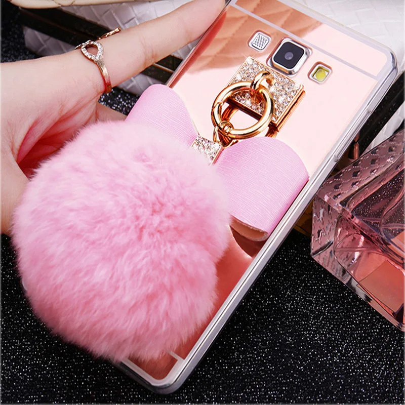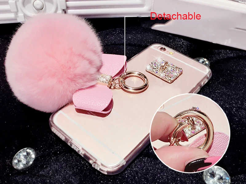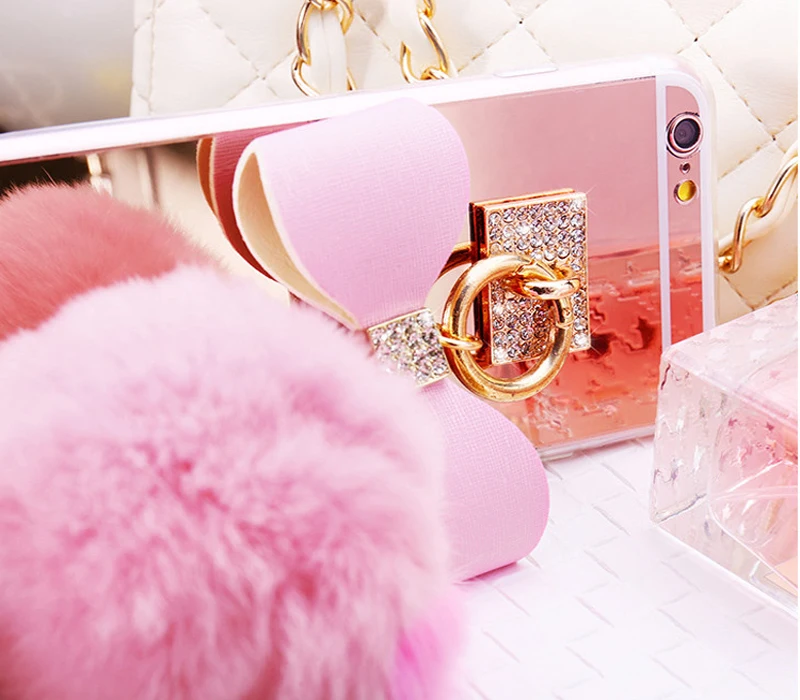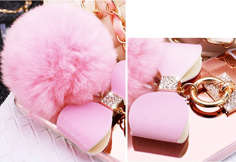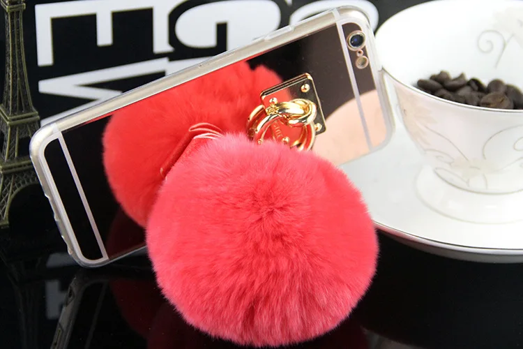 Features:Rabbit fur ball glitter mirror case