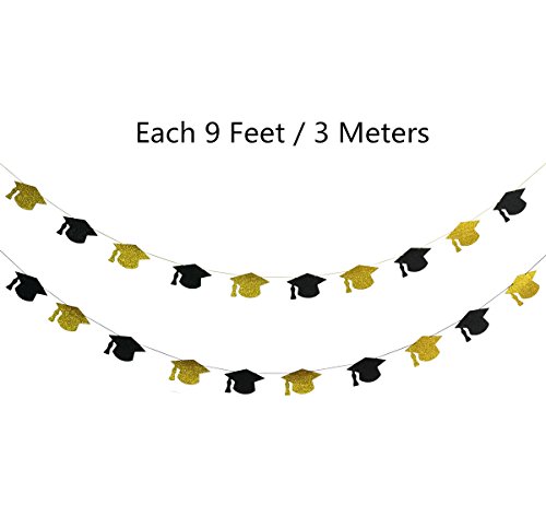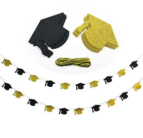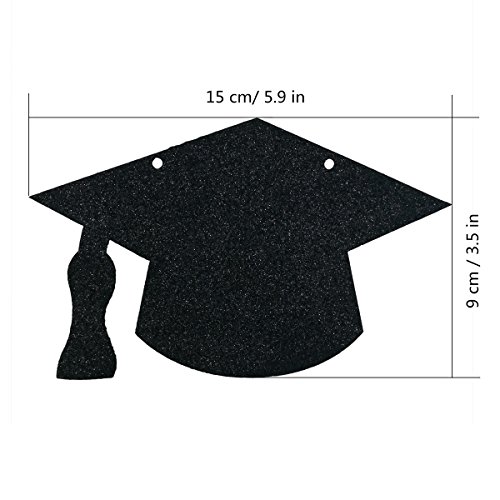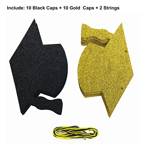Cualfec Graduation Hat Banners Personalized with Real Glitter for Graduation Party Decorations - 20 Counts. (Black & Gold)