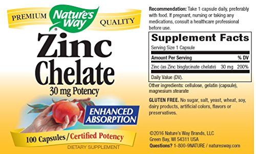 Nature's Way Zinc Chelate 30 mg Potency Enhanced Absorption