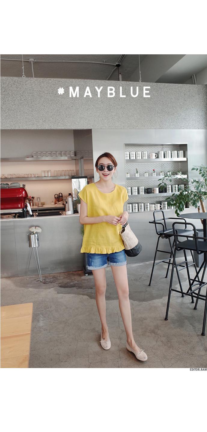 ラブリーフリルヘムリネンブラウス | 優しい着心地の、感性カジュアル Mayblue