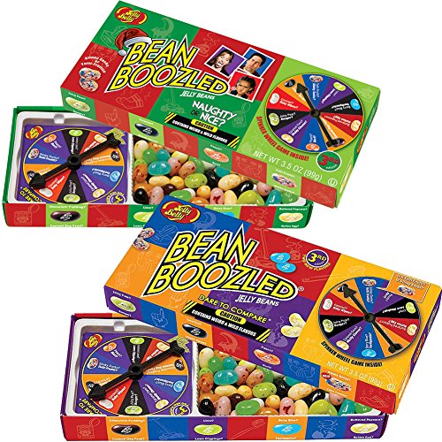 -. Binding : Misc. -. Brand : Jelly Belly -. Color : Multi-colored -. EAN : 0841932139662 -. Feature : Ten "nice" jelly beans are matched with ten identical "naughty" candies in this clever gift box. / Spin the wheel to see if your treat will taste great or gross. / Will you get Stinky Socks or Tutti Fruitti? Moldy Cheese or Caramel Corn? Only Santa knows for sure! / Is it licorice or skunk spray? Strawberry jam or centipede flavor? Yeeeech! / Makes a great stocking stuffer or gag gift. Both are 3.5 oz boxes. -. Label : Johnson Smith Co -. Manufacturer : Johnson Smith Co -. MPN : E85845 C19874A P2 -. PackageQuantity : 2 -. PartNumber : E85845 C19874A P2 -. ProductGroup : Grocery -. ProductTypeName : GROCERY -. Publisher : Johnson Smith Co -. Size : One-Size -. Studio : Johnson Smith Co -. Title : Jelly Belly Bean Boozled Classic & Naughty Or Nice Spinner Games (1 Of Each) -. UPC : 841932139662