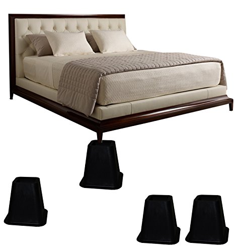 These pack of 4 black bed risers are a great way to gain 3 1/4' of storage space. Could be conveniently used on basically any type of bed, either foot or head of bed can be raised for medical conditions. These sturdy blocks instantly elevate your bed for additional under-bed storage place, excellent for those large storage containers. They are made of heavy duty unbreakable plastic, could hold heavy furniture in your home up to 200 pounds. Stack these bed risers when not in use to conserve space. This is great using for either your home, office or dorm room. 0 |