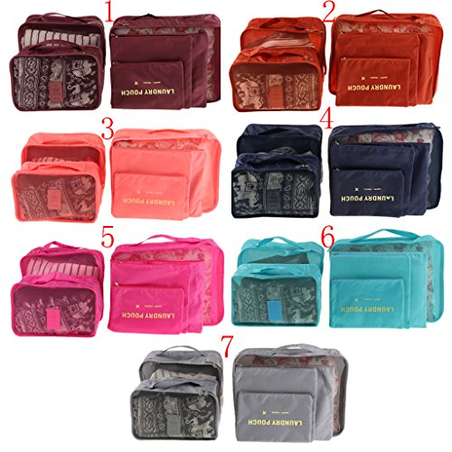 - 100% brand new and high quality - A set of six, can store a lot of items - When you go out, to help you to store clothes, underwear, socks, cosmetics, etc - Great for you to systematically manage your baggage when travelling - Material: nylon - Color: 7 colors - Quantity: 6pcs - 6 Sizes a set: