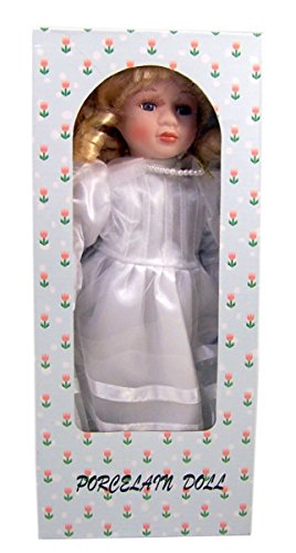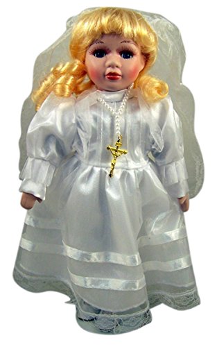 My First Communion Blonde Porcelain Doll with Satin Dress and Veil, 12 Inch