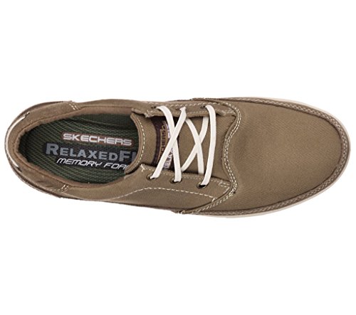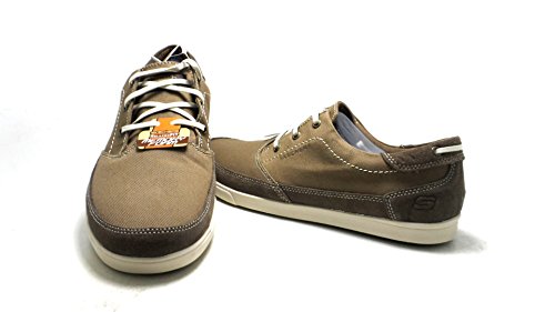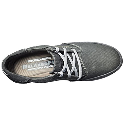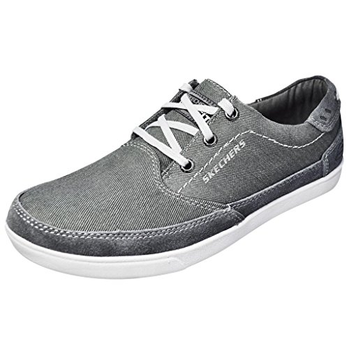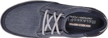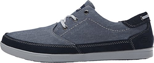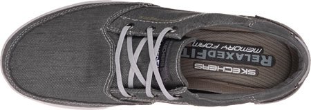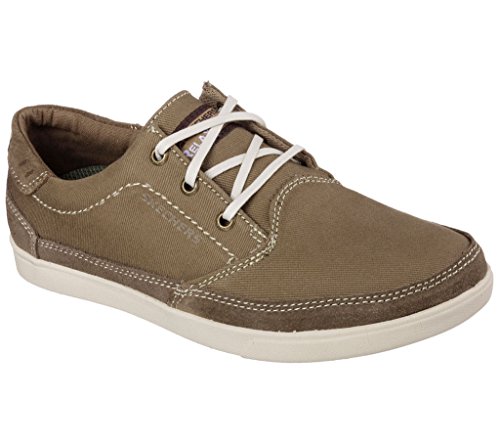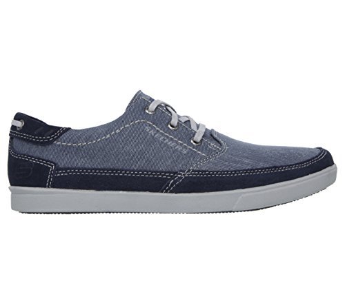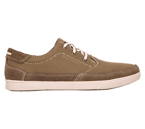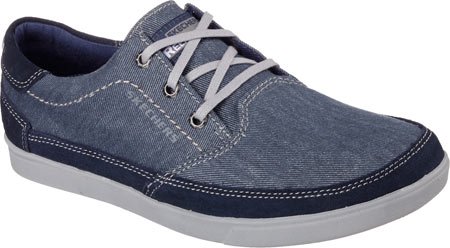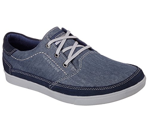 Binding : Apparel Product Description A classic low profile look combines with optimal comfort in the SKECHERS Relaxed Fit: Cardova - Bartos shoe. Smooth, soft woven canvas fabric and soft suede upper in a lace up sporty casual comfort sneaker oxford with stitching and overlay accents. Memory Foam insole. Embossed side SKECHERS logo detail. Lace up front with metal eyelets. Padded collar. Soft fabric shoe lining. Relaxed Fit® design for a roomy comfortable fit. Memory Foam cushioned comfort insole. Shock absorbing midsole. Low profile classic look rubber midsole sides. Flexible rubber siped deck-style traction outsole. 0