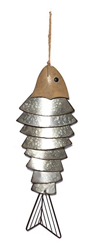 Split Metal Silver Fish on Jute Stringer Wall Hanging 24 Inches