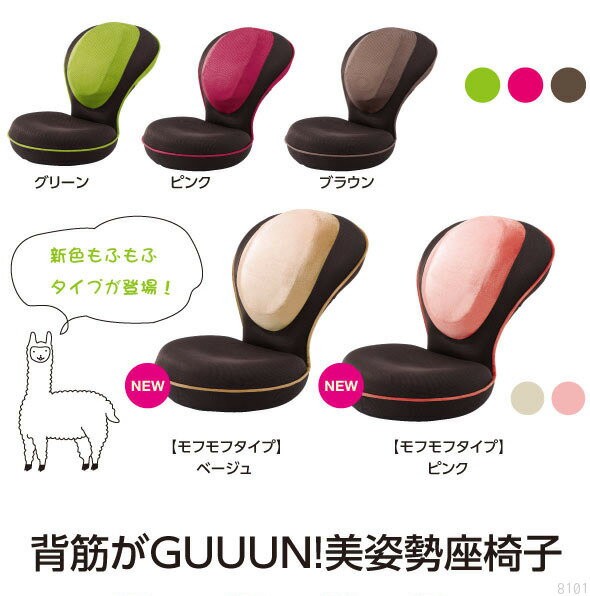色は5色で背もたれがメッシュの大人ブラウン、ハイセンスなグリーン、深みのあるピンクと、背もたれがモフモフなピンクとベージュです。