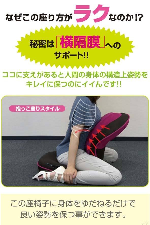 この美姿勢座椅子は体の前にバーがあるため、これが横隔膜を支えるような役割をしてくれるわけです。
