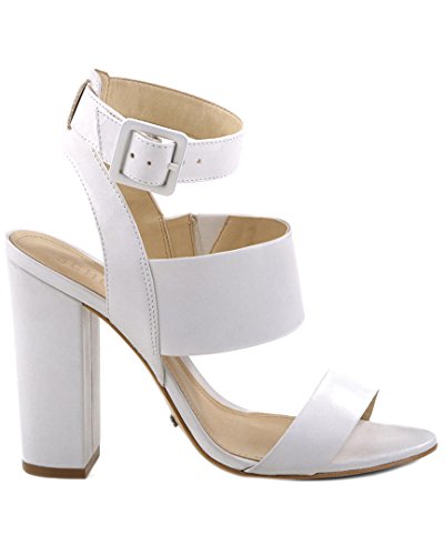 Product DescriptionDress sandal featuring buckle closure at ankle and covered block heel0