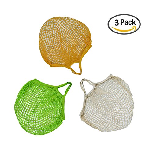 Kmool Cotton Mesh Bags, Grocery Bags, Fruit Bags,Beach Bags Set of 3