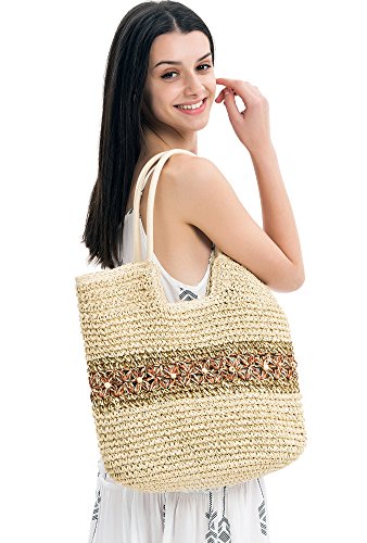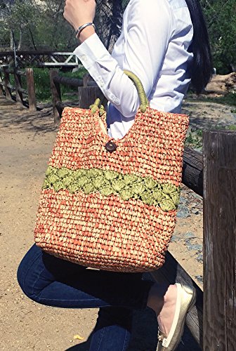 Product DescriptionFit all you daily essentials into this Daisy paper straw crochet tote bag. One coconut shell buttons on the front side. Lined interior with a zipper pocket and magnetic snap closure.0