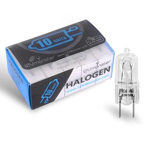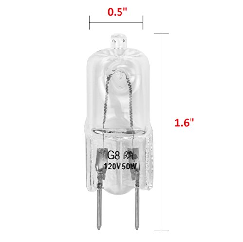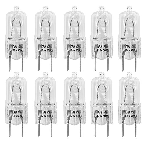 10 Pack-G8 50W 120V Halogen Light Bulbs JCD Type 110v 130v 50 Watt T4 G8 Under Cabinet Puck Lamp 120 Volt Undercabinet Microwave Oven Stove Top Kitchen Appliance Replacement Lighting Bi Pin Clear Lens