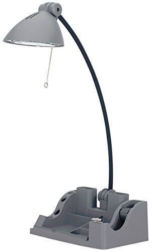 -. Feature : Functional halogen "soft-touch" organizer lamp / Includes organizer base with tape dispenser, pencil holder and storage slots / 22 inches tall with adjustable arm and shade / On/off push button toggle switch on cord / 120V 50W JCD halogen bulb included