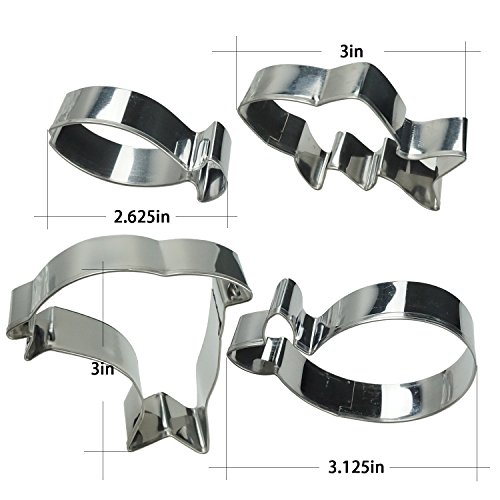 Pack of 4 Sea Ocean Creature Animal Shaped Durable Stainless Steel Cookie Cutter Set Fish Shark Dolphin Whale Cookie Mold by SHXSTORE