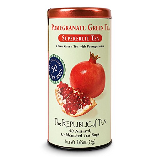 -. Binding : Grocery -. Brand : The Republic of Tea -. EAN : 0742676400196 -. Feature : The glistening crimson seeds of the pomegranate are juicy and sweet / Crisp, fresh China green tea creates an ideal base for this ruby-hued blend / Pomegranates are high in antioxidants, vitamins and anthocyanins and are cited to boost cardiovascular health and reduce inflammation -. Label : The Republic of Tea -. LegalDisclaimer : We are not affiliated, associated, authorized, endorsed by, or in any way officially connected with The Republic of Tea, or any of its subsidiaries or its affiliates. -. Manufacturer : The Republic of Tea -. MPN : mp-40019 -. NumberOfItems : 1 -. PackageQuantity : 1 -. PartNumber : mp-40019 -. ProductGroup : Grocery -. ProductTypeName : GROCERY -. PublicationDate : 2010-10-15 -. Publisher : The Republic of Tea -. Size : 50 Tea Bag Tin -. Studio : The Republic of Tea -. Title : The Republic of Tea, Pomegranate Green Tea, 50-Count -. UPC : 742676400196