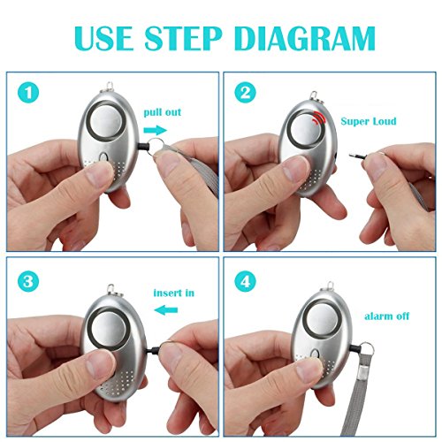 Handy Self-defense Safety Security Emergency Alarm 135-140dB with LED Flashlight Women Girls Elderly Gift Silver One Size