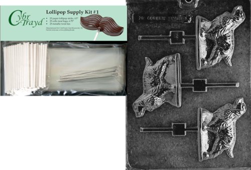 Cybrtrayd "Cocker Spaniel Lolly" Dog Chocolate Candy Mold with Lollipop Supply Bundle of 25 Lollipop Sticks, 25 Cello Bags, 25 Silver Twist Ties and Instructions