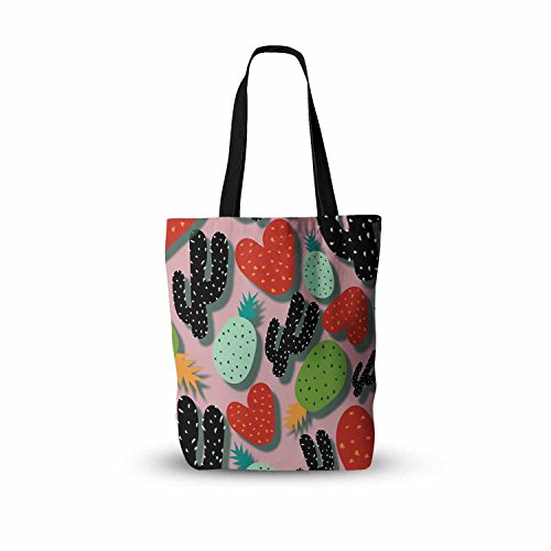 KESS InHouse "SusanaPaz Cactus And Pineapples Pink Black Digital Everything" Tote Bag, 18" x 18", Multicolor
