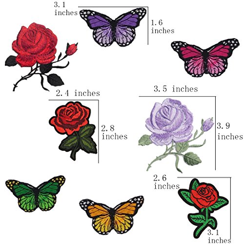 Comfun 16 Pieces Iron on Rose Patch Flower Butterfly Applique Embroidery Floral Applique Patches for Jeans, Jackets, Bags, Shoes