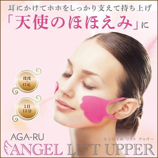 | 耳にかけてしっかり支えて持ち上げ「天使のほほえみ」に。 |