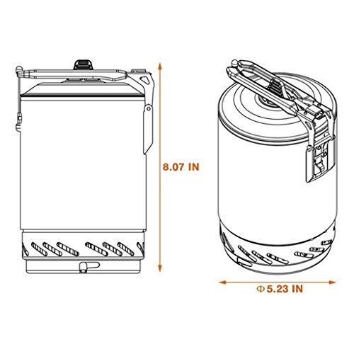 APACE SAVING: It equals to large volume cup that can hold standard 230G gas tank. The Stove design nests inside the pot (included) leaving you with more room in your backpack. The pot is 8.07" (height), 5.23" (diameter).
