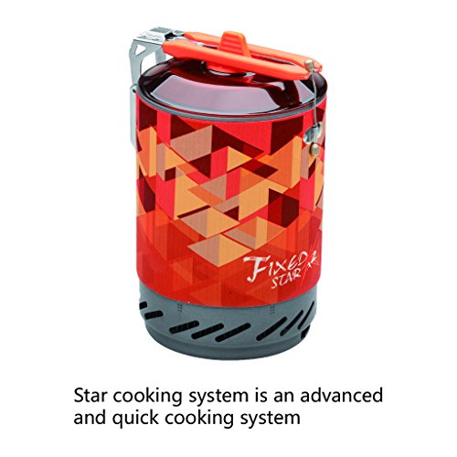 HIGH HEATING EFFICIENCY: Star cooking system born to be high heating efficiency. Adopting heat exchanger tech,the efficiency is improved above 30%. Used unique base metal butt welding technology for the pot body, insulated with Sponge contributie to reduce heat lost and protect your hand from burning metal. High windproof and no need for wind-screen. Boils water in 4-5 mins(1L water).
