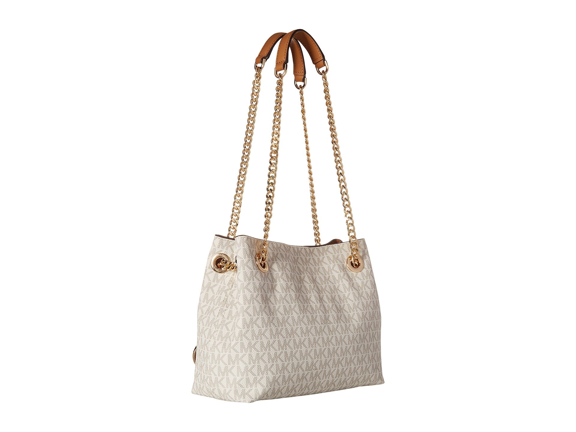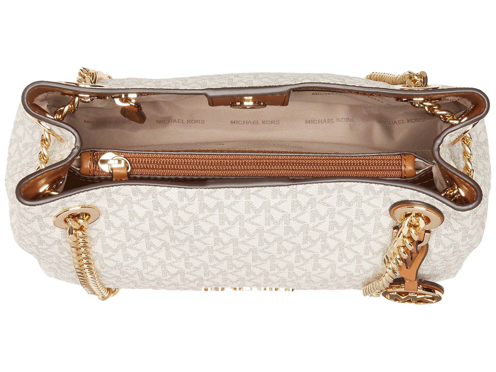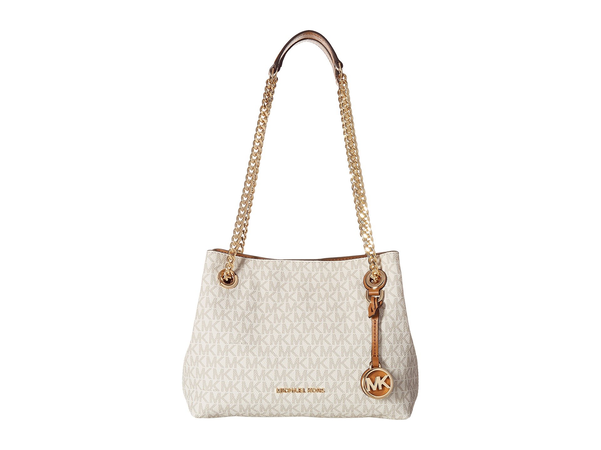 | Product Information SKU: #8976642The MICHAEL Michael Kors? Jet Set Chain Medium Messenger is sleek and edgy while maintaining an air of class and sophistication. We absolutely cannot get over her!Made of logo printed leather.Open construction with magnetic closure.Dual chain shoulder straps with leather detail for comfort.Flat base to provide upright structure.Signature silver-tone logo hardware detail and bag charm in front.Customer woven lined interior.Interior features a center zipper compartment, slip pockets, and a back-wall zip pocket.Imported.This product may have a manufacturer's warranty. Please visit the manufacturer's website or contact us at warranty@support.zappos.com for full manufacturer warranty details.Measurements: Bottom Width: 9 1?2 in Depth: 3 1?2 in Height: 7 in Strap Length: 23 in Strap Drop: 11 in Weight: 1 lb 3 oz |