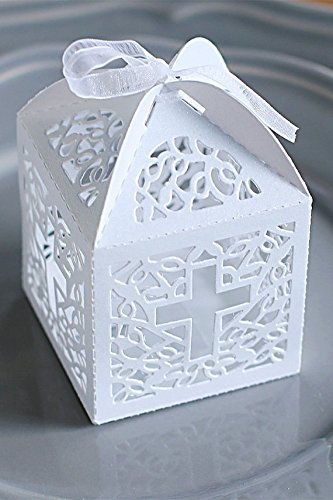 12 pc white cross laser cut wedding bridal favor box christening baby shower / baptism favor gi...