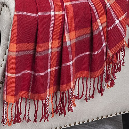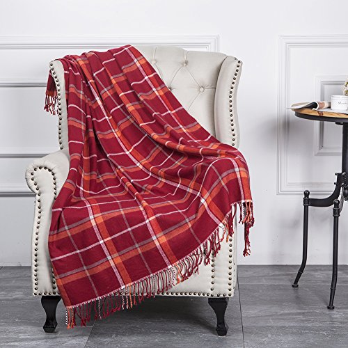 Classic Home Throw Blanket Shawl All Season Acrylic Cozy Soft Reversible Picnic Stadium Camp Blanket Fringe Plaid for Bed/Sofa/Couch ,Cashmere-Like 50"W x 67"L (Red)