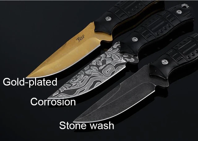 | [해외] PEGASI 캠핑 사냥 고정 블레이드 나이프 스테인레스 스틸 골드 도금, 부식, 돌 세척 블레이드 야외 생존 칼 |