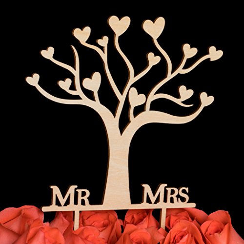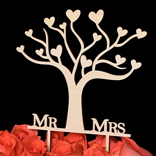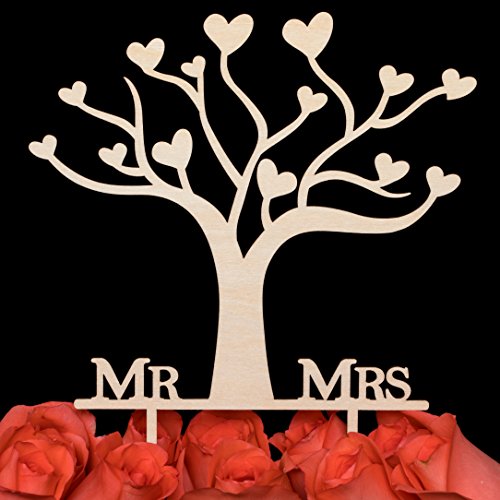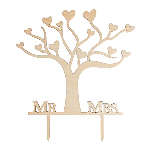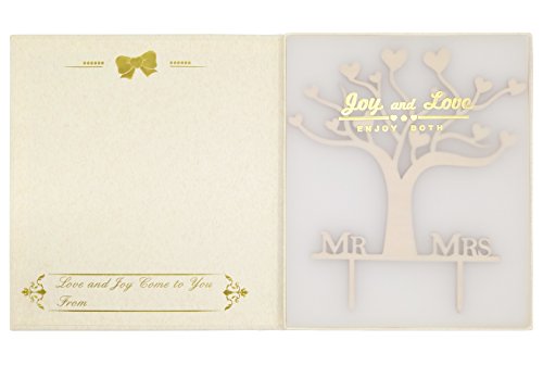 LOVENJOY with Gift Box Mr and Mrs Wedding Engagement Cake Topper Tree Rustic Wood (5.5-inch)