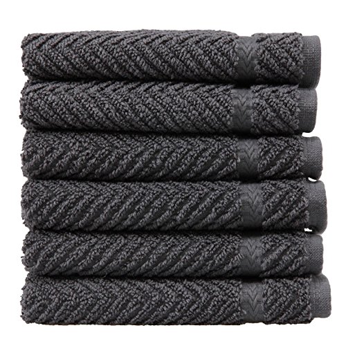Linum Home Textiles Herringbone Premium Authentic Soft 100% Turkish Cotton Luxury Hotel Collection Washcloth, Set of 6, Grey