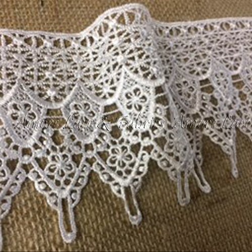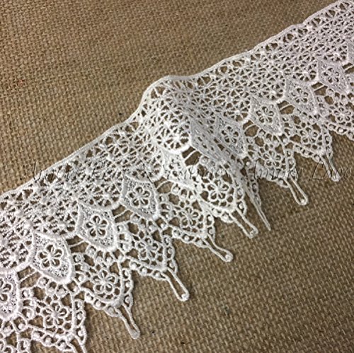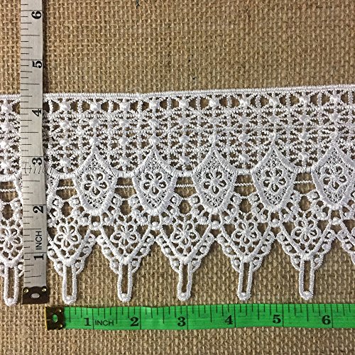 2 Yards, Victorian Venice Lace Trim with Flat Top and Details, White, 4" Inches