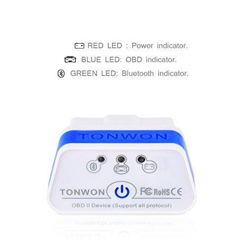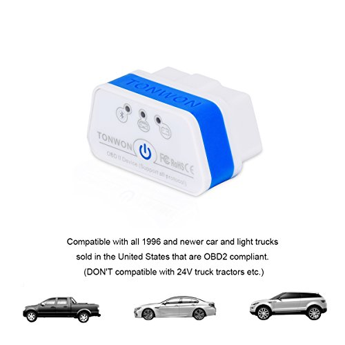 -. Feature : ¡ïEXCELLENT COMPATIBILITY ¨CTONWON OBD2 Scanner works on ALL 1996 and newer vehicles and light trucks sold in USA that are OBD2 compliant. Supports the mainstream OBD-II protocols: CAN, KWP2000, ISO9141-2, J1850 VPW and J1850 PWM / ¡ïWORKS WITH HUNDREDS OF APPS ¨CTONWON OBD2 Scanner Supports Android£¬iOS and Windows. Compatible Apps include Torque Lite/Pro, DashCommand, Accurate. (Fee may apply by the App developer) / ¡ïREAD & CLEAR TROUBLE CODES ¨CTONWON OBD2 Scanner allows you to READ REAL-TIME engine sensor data: Engine RPM, Calculated Load Value, Coolant Temperature, Fuel System Status, Vehicle Speed, Short/ Long Term Fuel Trim, Intake Manifold Pressure, Timing Advance, Intake Air Temperature, Oxygen sensor voltages/associated short term fuel trims (Your vehicle may not support all above parameters.) / ¡ïEASY FITMENT - The majority of cars made in the past 2 decades are fitted with an OBD2 diagnostic port, simply find the port and plug the TONWON OBD2 Scanner in. / ¡ï100% RISK FREE PURCHASE:30-day money back guarantee, 12-month hassle-free replacement warranty and easy to reach, friendly customer support.
