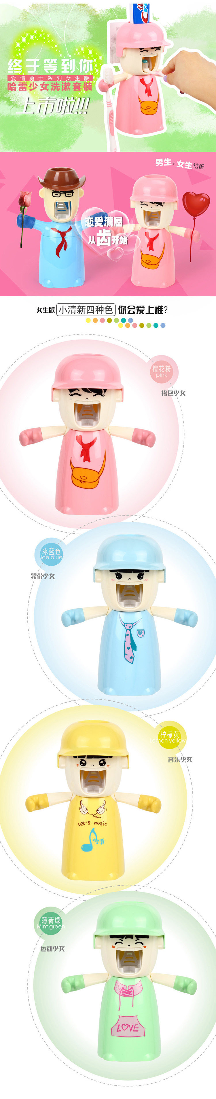 In fact, this is a practical idea from creative supplies, Warriors of love (love's warriors) wash kit. The set of products in one multi-functional, doll opens mouth automatically out toothpaste, micro grip hands were cleverly designed toothbrush holder, big belly into the cups, magnets positioned inside the Cup, no matter what place, cups will automatically rotate to the front in order to maintain the integrity of doll styling. In addition, the glass also has the function of protection against dust and water.