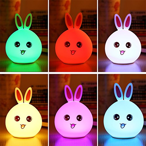 - ♥♥Lovely Appearance: Super cute Rabbit,making it a romantic sweet nursery baby night lamp companion.And it is easy to use as Bedside night lights