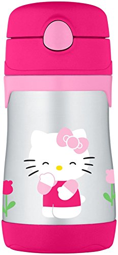 Thermos Vacuum Insulated Stainless Steel Straw Bottle - Hello Kitty, Red/Pink, 10 OZ