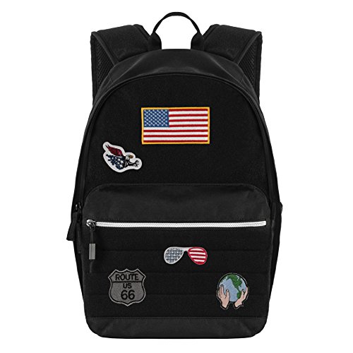 Product Description Perfect for school, commuting, travel and everyday use, the Balfour/OGIO Raven Patch Backpack carries your daily essentials and enhances your personal style with self-adherent patches. Our hook and loop patches (sold separately) attach directly to this sleek black backpack's soft, yet durable front panel and on top of the straps without any ironing or sewing. The roomy main compartment features a padded sleeve for devices up to 15 inches large, and a zippered mesh pocket for valuables. Carry your water hands-free with the mesh bottle pocket, and get into the front pocket quickly with an easy access front zipper. This backpack is 17.15 inches tall, 11.5 inches wide, and 7.75 inches deep with adjustable shoulder straps for more comfort. The 11 inch front pocket spans the width of the backpack, and it's 1.5 inches deep. Ogio guarantees the backpack to be free of defects in materials and workmanship to the original purchaser for one full year. Damage, abuse and normal wear are not covered. 0