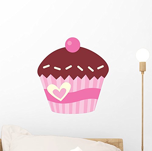 Wallmonkeys WM231244 Cute Pink Cup Cake with Cherry Peel and Stick Wall Decals (12 in H x 8 in W)