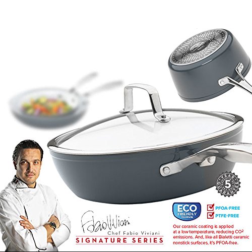 The Aeternum Signature Line is changing the way we view cooking. Bialetti's Aeternum Signature Series cooks almost anywhere: gas, electric and induction stovetops. Even in the oven. With the same beautiful styling, easy-to-clean interior and eco-friendly manufacturing process, this Aeternum 6 Quart Dutch Oven is the ultimate in nonstick ceramic cookware. The cookware's white ceramic interior is designed for easy release and better browning. This earth-friendly pan is PTFE, PFOA, and Cadmium-free, and unlike other nonstick cookware, Aeternum's nonstick coating will not become absorbed in your food. Cast stainless steel handle goes from stove to oven and is oven safe up to 400-degrees F. The pan is generously sized to help you tackle all your frying and sauteing needs. Includes a tempered glass cover that seals in moisture and flavors while allowing you to safely monitor cooking progress. Use only nylon, wood, or high temperature silicone tools. In order to guarantee the best performance, avoid sharp pointed metal utensils that could scratch or ruin the nonstick surface. Do not use knives or small appliances such as electric mixer to chop or mix food if your cookware. Such use can damage the interior surface and void the warranty. Bialetti began in Italy, but has become a leading brand around the world for its high-quality products bringing simplicity, functionality and beauty to the kitchen. Bialetti's advanced technology and distinctive styling combine to create cookware that's simple to use and simply beautiful. Bialetti is authentically Italian, where the kitchen is the heart of the home.Feature