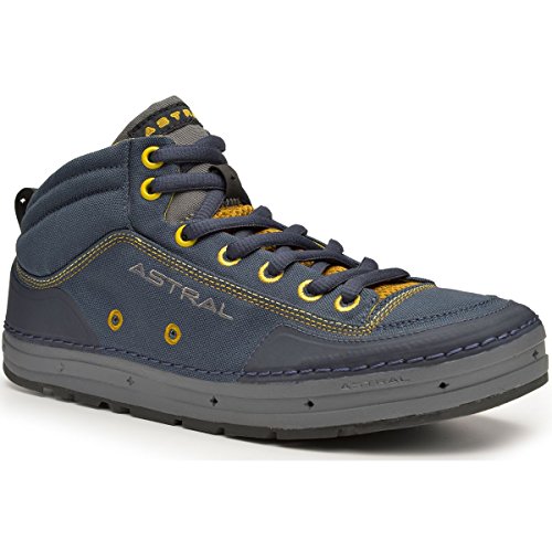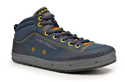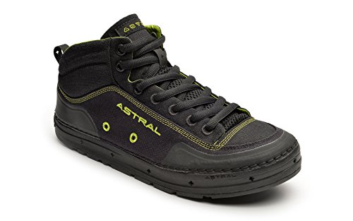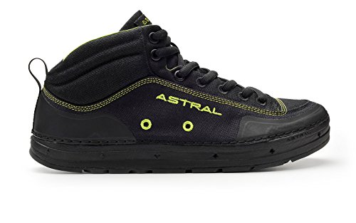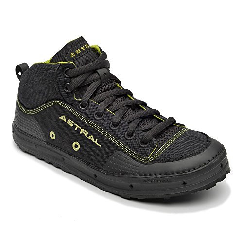 Studio : Astral Buoyancy Publisher : Astral Buoyancy Product Description The Astral Rassler Water Shoe is built to be in and around water, but it can conquer a serious hike too. This mid cut boot has enhanced foot support and reinforced wear zones so it is comfortable and will hold up to all your travels. The self-draining uppers means no more squish, squish as you walk after wading in the water. The stiffened Natural BalanceTM midsole helps control foot fatigue while the G.S.S. ("super sticky") outsole is incredibly grippy. This lightweight shoe will be a welcome relief for your tired feet it provides support and protection for walking deep into the woods with or without a kayak. Minimalist construction lightens weight, improves foothold, and greatly reduces the need for toxic adhesives in construction.Breathable Airmesh vamp tongue promotes drying.Drainage at front sidewall and Silt Dump at heel lets water and debris quickly drain out but it is high enough to keep puddle water from coming in..Natural BalanceTM Midsole (zero drop) places heel and ball of foot on same level for the best balance in unpredictable terrain.Rockered toe for navigating rocky paths.Water resistant 9mm oval laces.Weight/pair: 250g (8.82 oz). 0