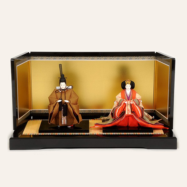 ・台座・屏風等には落ち着いた色目の雛人形セット。