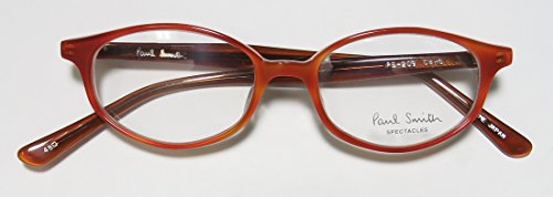 Brand: Paul Smith Style: 209 Gender: womens Frame Type: full-rim Frame Material: plastic Case: eleganzo Size: 48-17-145 Color code: cbhg-b Frame Color: amber Lens Color: demo lenses Lens Height: 33 mm The frame is fully rx-able and can be fitted with prescription and/or tinted lenses at most optical stores. Please note that factory demo lenses have a logo stamped on them in ink. This frame provides comfortable fit and flatters a variety of face shapes. These eyeglasses are crafted from high quality, durable premium acetate plastic. Please keep in mind that original case is not included with this frame. However, we will include an Eleganzo hard case at no extra charge to keep your eyeglasses protected. The glasses are made in Japan. These eyeglasses retail for $340.00 at upscale stores that carry designer frames. Save your money and get them here! The pictures cannot fully reflect the beauty of this piece of designer eyewear. These eyeglasses look even more elegant in real life. 0 |