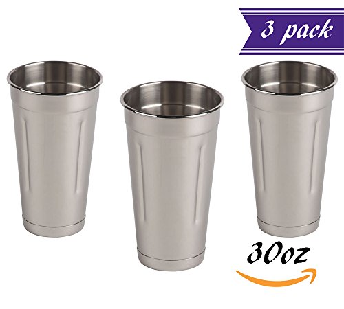 -. Title : (3 Pack) 30 oz Malt Cup Stainless Steel, Professional Blender Cup, Milkshake Cup, Cocktail Mixing Cup, Commercial Grade