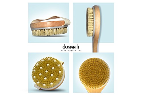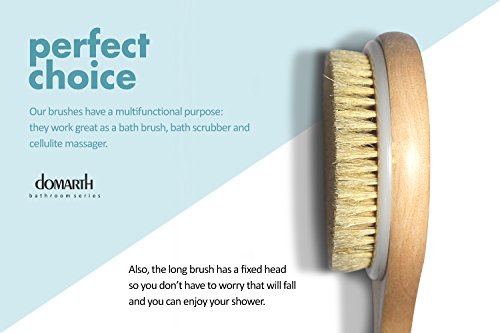 -. Binding : Misc. -. Brand : Domarth -. EAN : 0661787739189 -. Feature : REJUVENATE YOUR SKIN: with our brushes made from 100% natural wood and boar bristles. / 15.7'' NON-DETACHABLE LONG HANDLE: so you can reach every part of your body without worries that the head will fall off. / 4'' MASSAGE BRUSH: with an elastic strap and massage nodes, used for break down cellulite cells. / PERFECT FOR DRY/WET BRUSHING: it will increase skin elasticity, improve the aspect of your skin, will reduce cellulite and most important no more hair growing under your skin. / SET OF 2: includes a long brush and a massaging brush, great for a gift. -. IsAdultProduct : 0 -. Label : Domarth -. Manufacturer : Domarth -. MPN : BB00B -. PartNumber : BB00B -. ProductGroup : Beauty -. ProductTypeName : BEAUTY -. Publisher : Domarth -. Studio : Domarth -. Title : Dry Brushing Set - 100% Natural Boar Bristles - Gentle Massage for Cellulite - Body Scrubber for Shower - Exfoliating Brush for Glowing Skin -. UPC : 661787739189