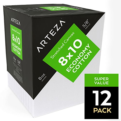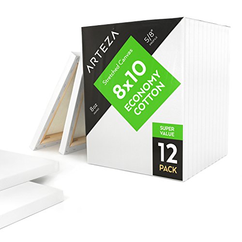 Arteza Blank Pre Stretched Canvas for Painting, 8x10", Pack of 12,Primed, 100% Cotton, For Acrylic Paint, Oil Paint, & Other Wet or Dry Art Media, For the Professional Artist, Hobby Painters, & Kids